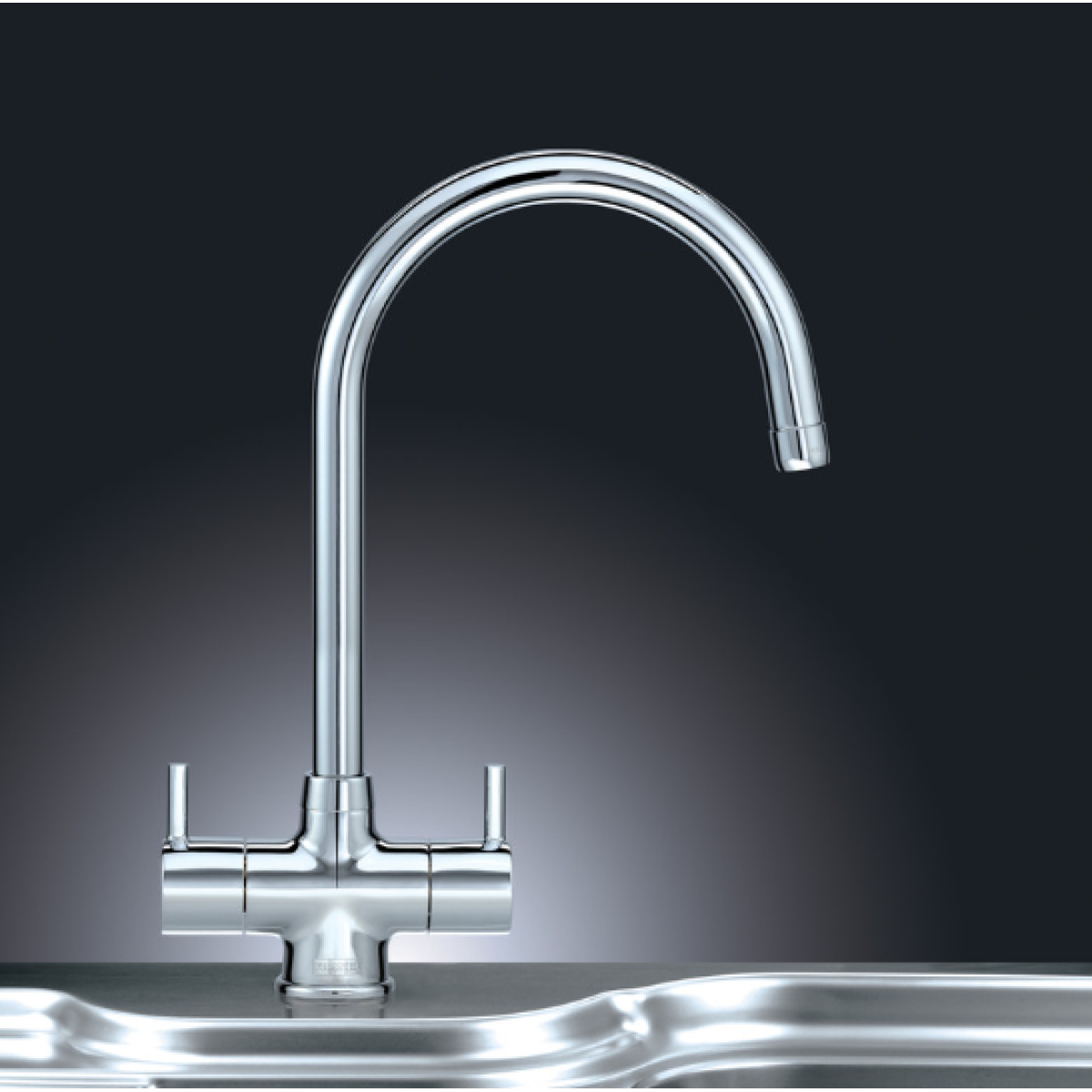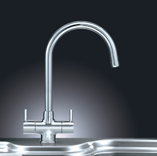 • Elegant swan neck twin lever kitchen tap